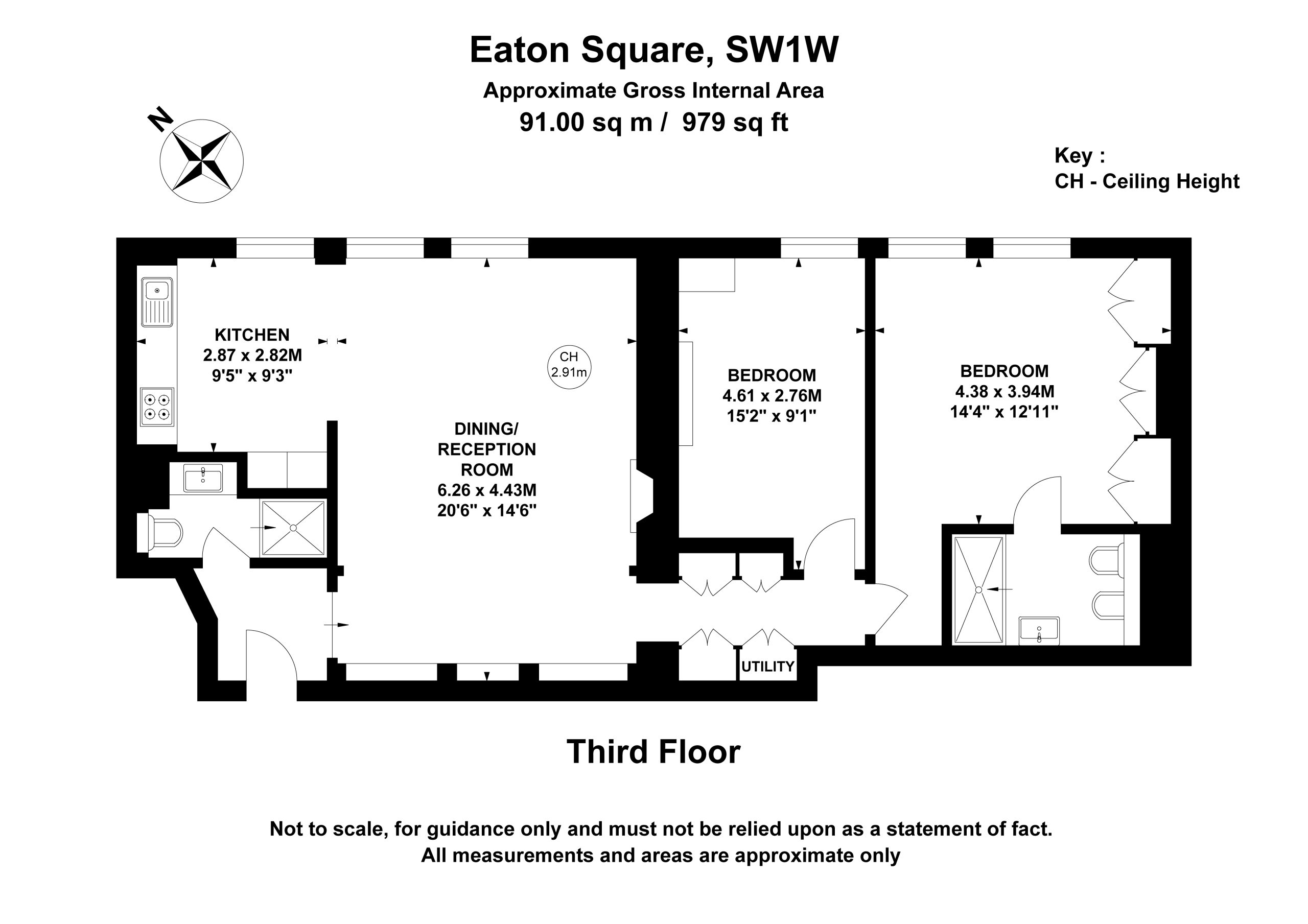 Elegant two-bedroom, two-bathroom apartment set on the third floor of a prestigious Eaton Square building with lift access. Measuring approximately 971 sq ft, the property features a large, bright reception/dining room with beautiful views over the communal gardens, a modern fitted kitchen with an island, and stylish contemporary furnishings throughout.