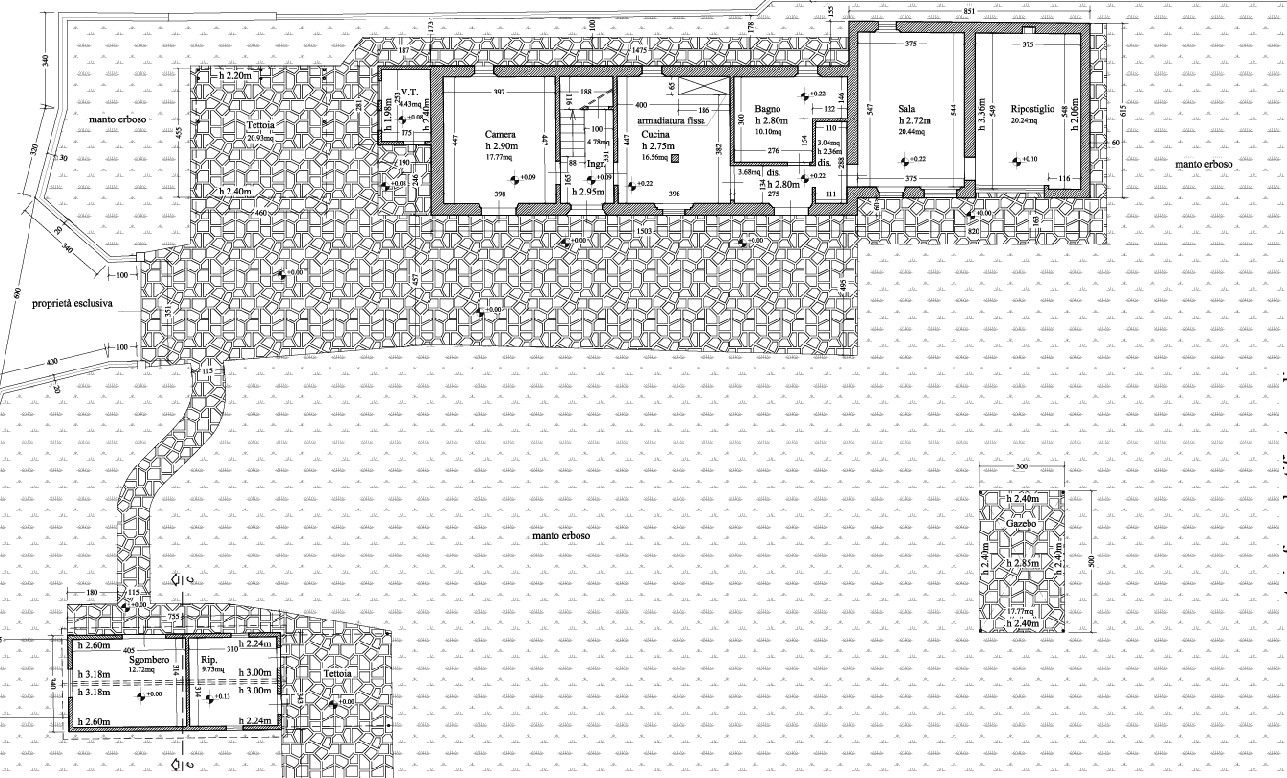 La proprietà è immersa in un giardino privato di circa 2.000 mq, dove è possibile realizzare una piscina.